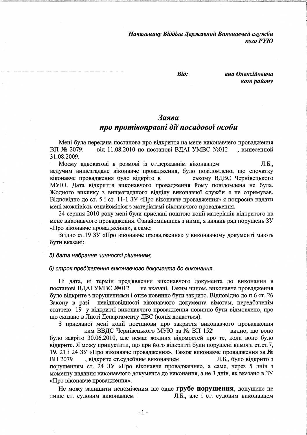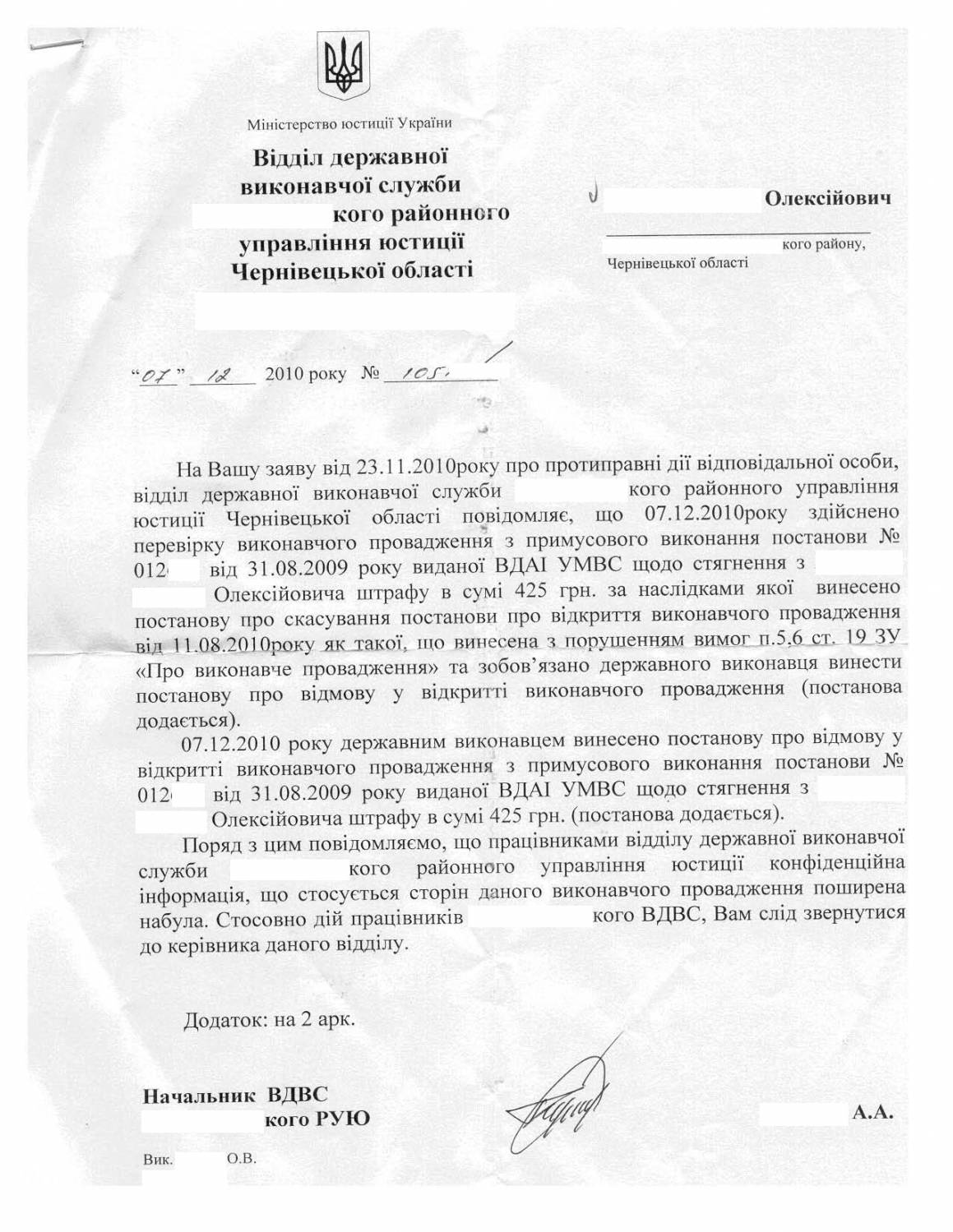 Поначалу я разговаривал с судебным исполнителем по телефону и пытался «по хорошему» вынудить его закрыть исполнительное производство, как открытое с нарушениями вышеуказанного ЗУ. Я не углублялся в подробности, просто советовал внимательно прочитать ст. 19 и убедиться, что постановление ДАИ соответствует требованиям этой статьи.